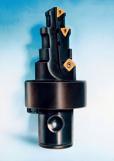 Stufenaufbohrwerkzeug zur Optimierung des Fertigungsablaufes. Durch die besondere Schneidenanordnung konnte die Bearbeitung durch mehrere Werkzeuge in einem Werkzeug zusammen gefasst werden.