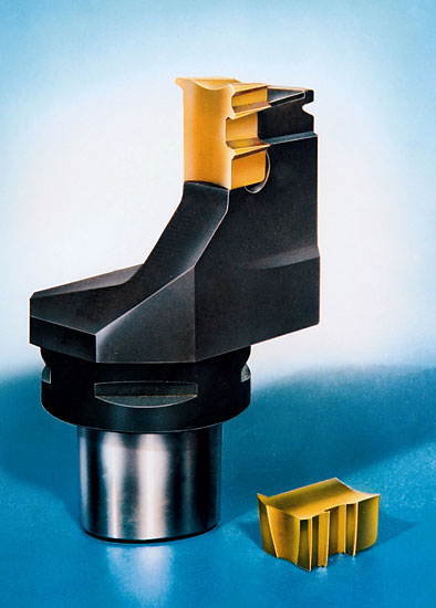 Dieses Werkzeug löste einen Voll-HSS-Profilstahl ab. Hierdurch wurde die Standzeit und Rentabilität um ein Vielfaches verbessert. Die Anwendung ist eine Einstechoperation der Nuten zur Aufhängung von Turbinenschaufeln in einem Stahlgehäuse mit 2000mm Innendurchmesser.